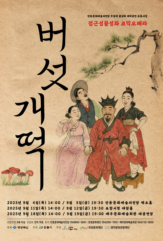 포항문화재단(대표이사 이상모)은 오는 9월 11일과 12일 양일간, 포항시청 대잠홀에서 배리어 프리 코믹 오페라 '버섯개떡'을 선보인다.