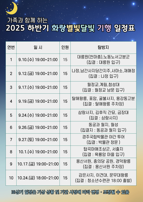 | ▲ 화랑별빛달빛기행 탐방 일정 | ||