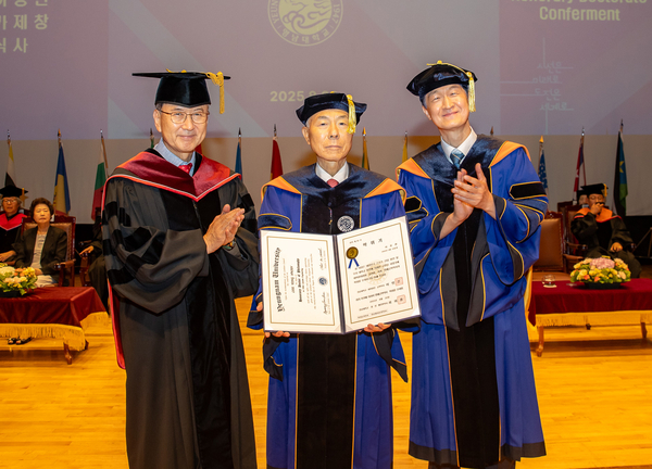 최외출 총장은 “오늘 이용환 회장에게 명예공학박사 학위를 수여하고, 강의실 네이밍 동판을 제막해 매우 뜻깊게 생각한다”며 “한국 스포츠·아웃도어 산업의 선구자로서 산업 발전뿐만 아니라 모교와 후학을 위한 헌신에도 앞장서며, 후배들에게 변함없는 애정과 나눔의 모범을 보여주셨다”며 축하의 뜻을 전했다.