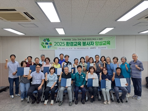 예천군이 환경문제에 관심있는 일반인을 대상으로 지역사회의 환경리더로 양성하기 위한 ‘환경교육 봉사자 양성과정’을 올해 7월 9일부터 24명의 참여자를 총 15회(30시간) 실시후 지난달 29일 수료식을 개최 했다고 밝혔다.