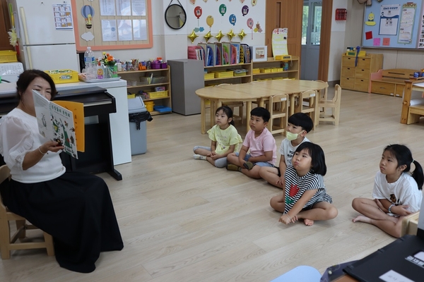 울진 노음초등학교병설유치원은 지난 28일 유아 4명(5세 4명)과 인솔교사 1명, 책책빵빵 강사 1명이 함께 노음초등학교 병설유치원에서 ‘책책빵빵’ 활동을 실시하였다.