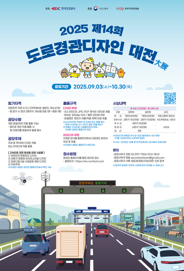 한국도로공사는 누구나 참여 가능한 제14회 도로경관디자인 대전을 개최한다.