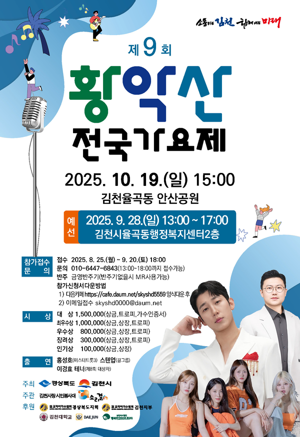 김천사랑시민봉사대 소리결에서 주관하는 이번 가요제는 남녀노소 제한 없이 누구나 참가할 수 있으며 오는 28일 율곡동 행정복지센터에서 예선을 통해 본선 진출자 14명을 선발한다.