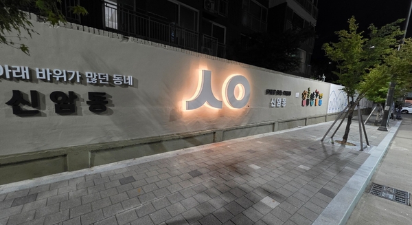 이번 사업에는 2천만원의 예산이 투입됐다. 약 100m 구간의 벽면에는 스텐실 기법을 활용해 동구의 명소인 봉무공원, 망우당공원, 동촌유원지를 형상화했고, ‘행복한 신암동’을 알리는 밝은 이미지의 입체 조형물도 설치됐다. 덕분에 삭막했던 벽면이 주민 친화적 거리 풍경으로 바뀌었다는 평가다.