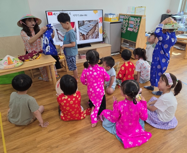 보드게임 활동 후에는 지역 유관기관의 다문화교육 전문 강사를 초빙, 각국의 전통, 언어, 음식, 의상을 체험하며 문화적 다양성에 대한 열린 마음을 기르는 다문화 이해교육이 진행된다.