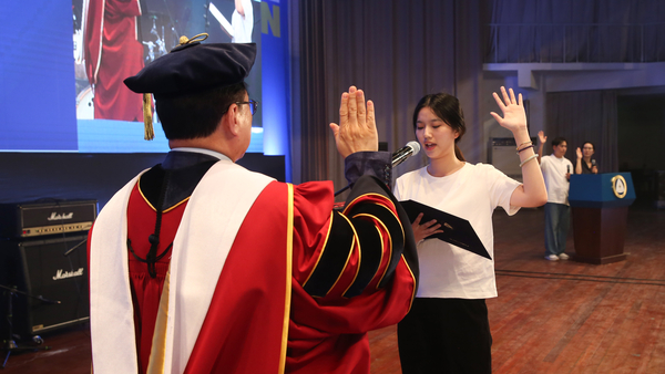 식전 공연으로 시작된 입학식은 성한기 총장의 환영사와 중국 유학생 대표, 신입생 대표의 다짐이 이어지며 따뜻한 분위기 속에서 진행됐다. 이어 댄스 동아리 ‘춤사랑’과 실용음악과 밴드의 무대가 더해져 학생들의 환호를 받았다.