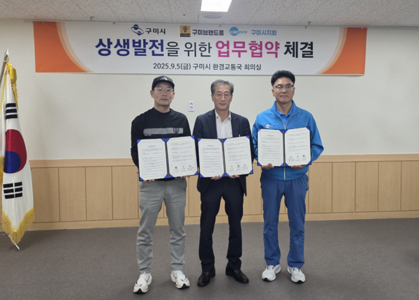 시는 지난 5일 환경교통국 회의실에서 Carpos 구미시지회(지회장 편청훈)와 구미브랜드콜택시회(회장 이창훈)와 함께 업무협약을 체결했다. 이번 협약으로 구미브랜드콜택시를 이용하는 승객은 9월 10일부터 2027년 12월 31일까지 멀티미디어 메시지 서비스(MMS)를 통해 매일 2천여 매의 정비할인쿠폰이 제공된다.