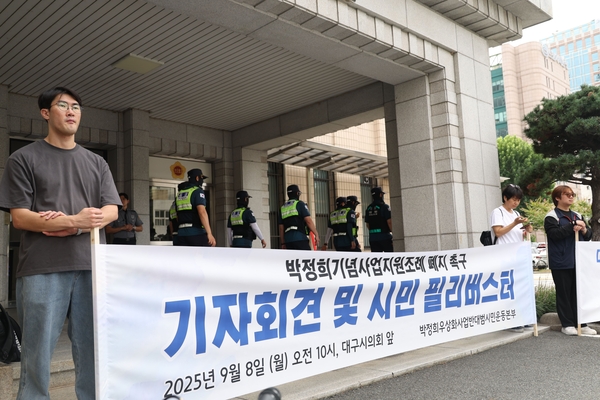 한편 박정희우상화사업반대 범시민운동본부는 이날 시의회 앞에서 기자회견을 하고 해당 폐지 조례안 가결을 촉구했다.