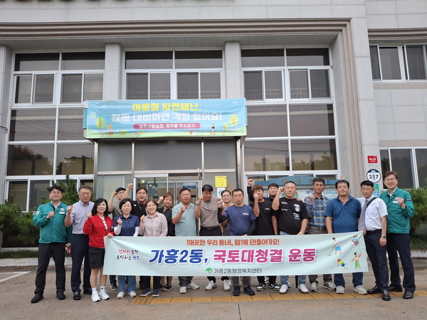김운동 영주시 가흥2동 주민자치위원회 위원장과 위원 25명이 지난 9일 추석맞이 국토대청결운동을 대대적으로 실시했다.서중길 가흥2동장은 “무더운 날씨에도 적극적으로 참여해주신 위원들께 감사드린다. 지속적인 환경 정비를 통해 깨끗하고 쾌적한 가흥2동을 만들어 나가겠다”고 말했다.