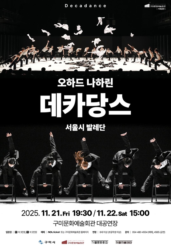 이번 공연은 오는 11월 21~ 22일 서울시발레단의 대표 레퍼토리 '데카당스’를 구미문화예술회관 대공연장에서 선보인다.