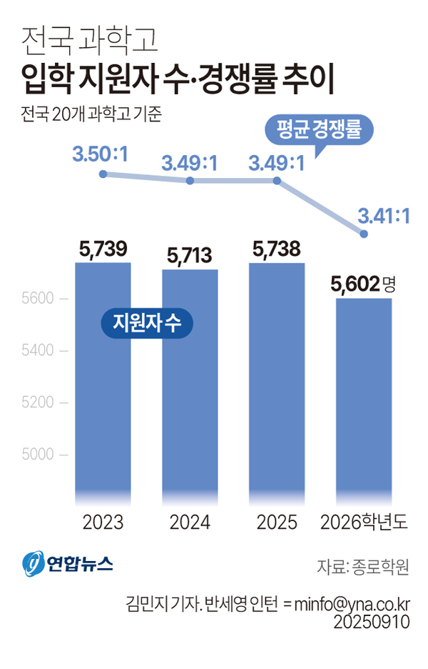 2026학년도 과학고 평균 경쟁률 3.41대 1…영재학교도 지원자 수 감소세