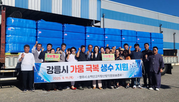 영주시 단산면 소백산고치령산령각문화보존회 함영운 회장이 11일, 극심한 가뭄으로 어려움을 겪는 강릉 지역 주민들을 위해 생수(2L) 1만 병(300만 원 상당)을 기부했다.
