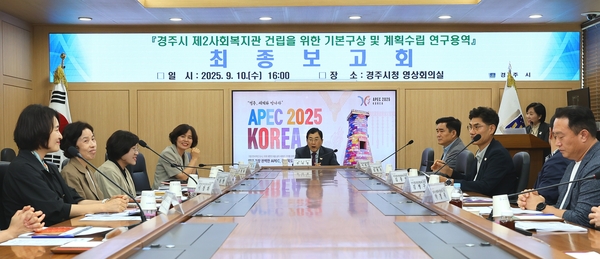 경주시는 지난 10일 시청 영상회의실에서 ‘경주시 제2종합사회복지관 건립을 위한 기본구상 및 계획수립 연구용역’ 최종보고회를 개최했다. 이날 보고회에는 주낙영 시장을 비롯해 시의회, 지역사회보장대표협의체, 사회복지협의회 등 관련 기관·단체 관계자 15명이 참석해 연구결과를 공유했다.