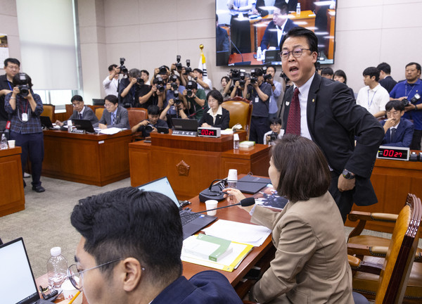 회의는 시작부터 거센 말싸움으로 얼룩졌다. 무소속 최혁진 의원이 나 의원을 향해 “징역 2년 구형받은 사람이 무슨 간사냐. 접시 물에 코 박고 죽어도 모자랄 일”이라고 직격하자, 국민의힘 곽규택 의원이 자리에서 일어나 “야, 이리 와봐. 그날 어디 있었냐”고 소리쳤다.