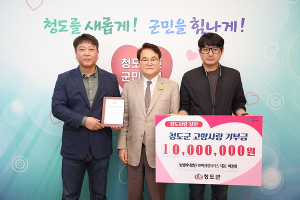 김하수 청도군수는 “청도군의 발전을 위해 고향사랑기부제에 적극 동참해 주신 허종범 대표께 감사 드린다”며 “기탁해 주신 소중한 기부금은 지역 발전과 주민 복지를 위해 뜻깊게 활용하겠다”고 감사의 뜻을 전했다.