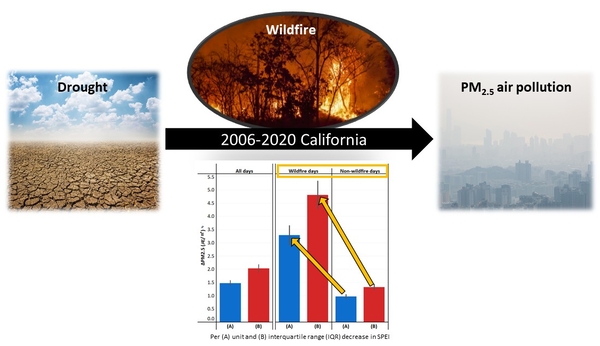 POSTECH(포항공과대학교) 환경공학부 이형주 교수 연구팀(통합과정 신민영·김나래)은 미국 캘리포니아주를 대상으로 15년간의 데이터를 분석해 가뭄과 산불이 초미세먼지(PM2.5)에 미치는 영향을 규명했다고 17일 밝혔다.
