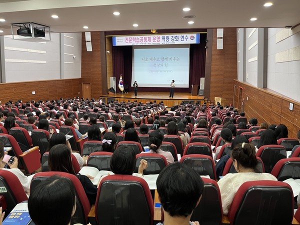 이날 연수는 전문학습공동체 운영 방향을 안내하고 화원꽃뜰유치원 박밝음·이동희 교사가 ‘함께 배우고, 함께 성장하기’를 주제로 전문학습공동체의 의미와 가치, 유아들이 놀이를 통해 배우는 과정, 교사의 효과적인 지원 방법, 관찰 기록 작성법 등을 실제 사례를 통해 소개했다.