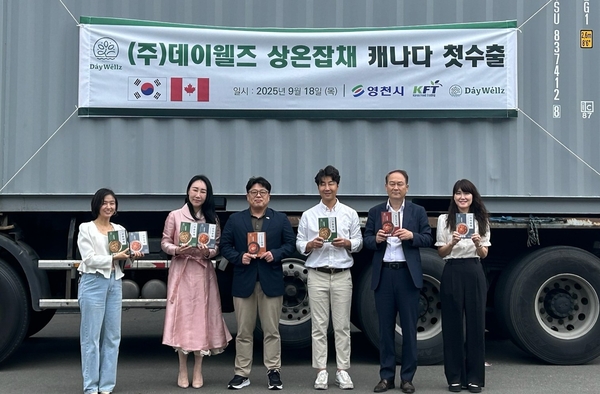 ㈜데이웰즈는 지난 18일 캐나다로의 첫 수출 선적식을 열었으며, 이날 행사에는 영천시 관계자들이 참석해 글로벌 도약을 함께 축하했다. 수출 품목은 △상온잡채(4종) △버섯장조림(3종) △고구마말랭이 등으로 20피트 컨테이너 분량, 총 3만4천 달러 상당이다. 제품들은 오는 11월 캐나다 토론토 갤러리아 슈퍼마켓 점포 행사에 전시될 예정이며, 영천시 2개 기업의 샘플도 함께 전시한다.