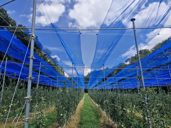 이번에 선보이는 ‘비용 절감 노지 복합제어 시스템’은 예인식 자동 차단망과 관수 시스템을 결합한 스마트농업 시설로, 우박·일소·가뭄 피해를 예방할 수 있다.