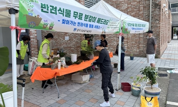 이번 ‘찾아가는 반려식물 돌봄 서비스’는 전문가가 직접 공동주택 단지를 방문해 물주기, 병해충 관리 등 반려식물 전반에 대한 컨설팅을 제공하고, 현장에서 분갈이 서비스도 지원했다. 올해 서비스는 지난 4일 안강을 시작으로 △천북 휴엔하임퍼스트 △외동 미소지움 △현곡 푸르지오 1·2차 △충효 이안·대우 1차 아파트 등에서 진행됐으며, 주민들로부터 큰 호응을 얻었다.