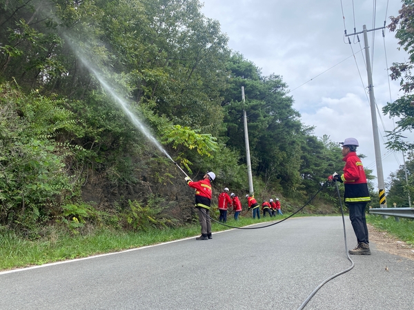 | ▲ 의성군 산림녹지과 기간제근로자로 구성된 신속 대응팀이 추석연휴 산불예방을 위한 연습을 하고 있다. | ||
