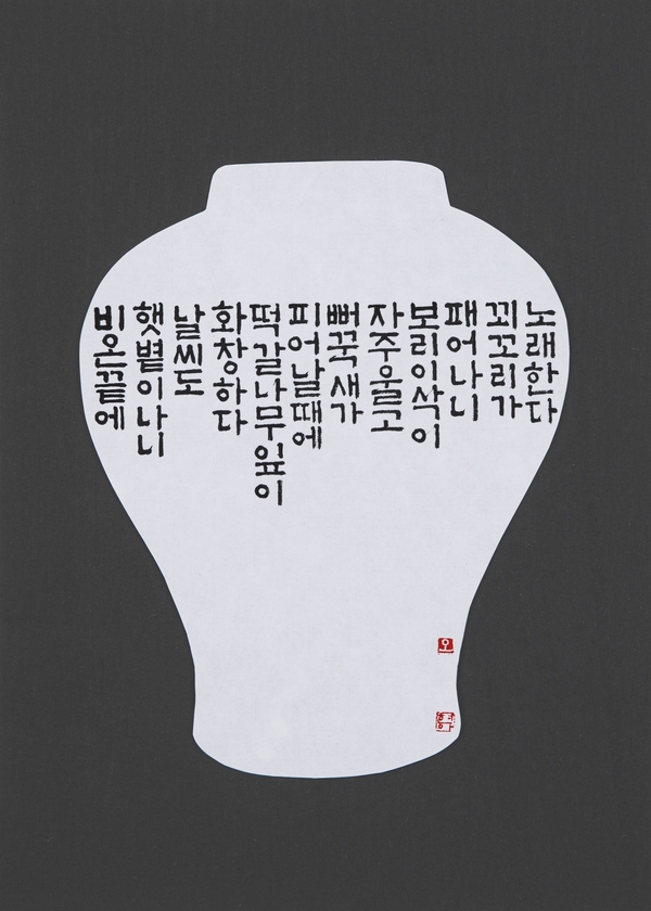 이번 전시에는 오랜 시간 써온 '농가월령가'를 비롯해 한글 문학과 궁체가 만나 이루는 서정성이 돋보이는 작품들을 출품한다.