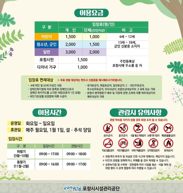 포항시시설관리공단 관계자는 “식물원 온실은 단순한 전시 공간을 넘어, 자연 생태교육과 치유의 기능을 갖춘 복합문화공간”이라며 “시민들이 사계절 내내 도심에서 이국적인 자연을 경험할 수 있을 것”이라고 밝혔다.