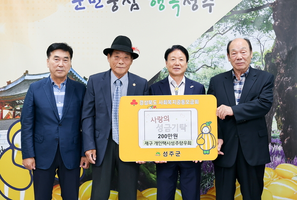 재구개인택시성주향우회(회장 석동수)가 지난 1일 성주군 행복금고 사업인 교통약자 택시 쿠폰 지원사업에 써 달라면서 성금 200만원을 기탁했다. 석동수 회장은 “고향의 어려운 이웃에게 조금이나마 도움이 될 수 있도록 앞으로도 기부를 이어 나가겠으며, 도움이 필요한 곳에 작게나마 힘이 되었으면 좋겠다”고 말했다.