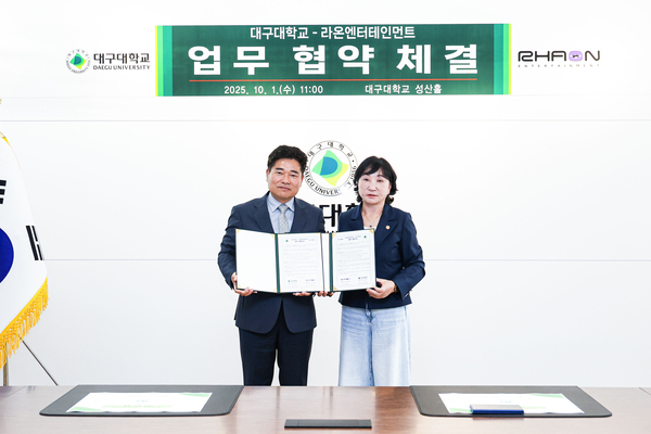 이번 협약을 토대로 대구대는 지역 산업 수요에 맞춘 맞춤형 인재 양성을 강화하고, 라온엔터테인먼트는 실무 기반의 교육 협력으로 산업 경쟁력을 높이는 산학협력 모델을 실현하게 됐다.