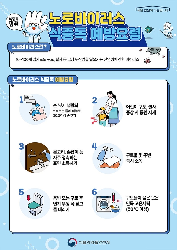 노로바이러스 등 가을철 식중독 예방을 위한 위생 수칙 홍보 활동도 함께 진행된다. 노로바이러스는 소량의 바이러스만으로도 감염될 수 있고 전염력이 강해 어린이집처럼 집단생활이 이뤄지는 시설에서 각별한 주의가 필요하다.