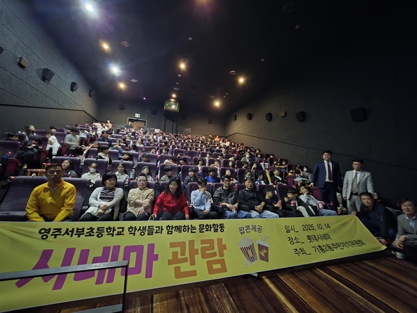 영주시 가흥2동 주민자치위원회(위원장 김운동)가 14일 영주서부초등학교 재학생 240명을 대상으로 영주롯데시네마에서 2개 상영관을 대여해 학년별로 맞춤형‘어린이 영화 상영회’를 개최했다. 서중길 가흥2동장은 “지역 아이들을 위해 뜻깊은 문화 행사를 마련해 주신 주민자치위원회에 깊이 감사드린다”며, “이러한 관심과 지원이 아이들의 정서 함양과 성장에 큰 힘이 될 것”이라고 말했다.