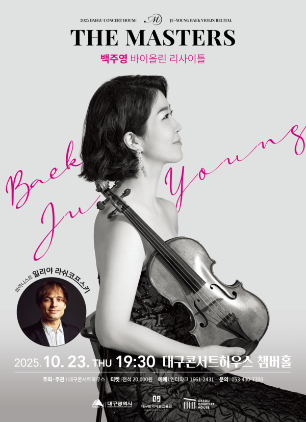 대구콘서트하우스의 독주회 시리즈 공연 ‘The Masters’(이하 ‘더 마스터즈’)의 '백주영 바이올린 리사이틀'이 오는 23일 대구콘서트하우스 챔버홀에서 열린다.