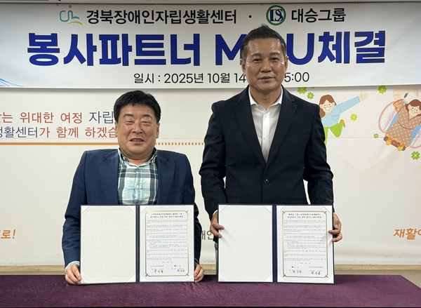 이번 협약식은 백승엽 회장과 박귀룡 센터장을 비롯한 양 기관 관계자들이 참석한 가운데 진행됐으며, 대승그룹은 이번 협약을 통해 그동안 꾸준히 이어온 봉사와 사회공헌 활동을 한층 강화하고, 인적·물적 지원 범위를 확대할 계획이다.