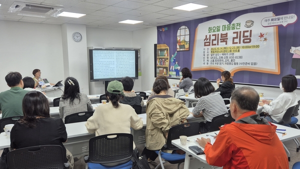‘청소년안전망 Into 아웃리치’는 주민들이 자발적으로 청소년 상담활동에 참여해 위기청소년을 조기 발견하고 지역사회 네트워크를 강화하는 역할을 수행한다. 이에 따라 진행되는 ‘화요일 마음충전 심리북리딩’은 매월 심리 주제를 정해 책을 낭독하고 마음챙김 활동을 진행하는 프로그램이다.