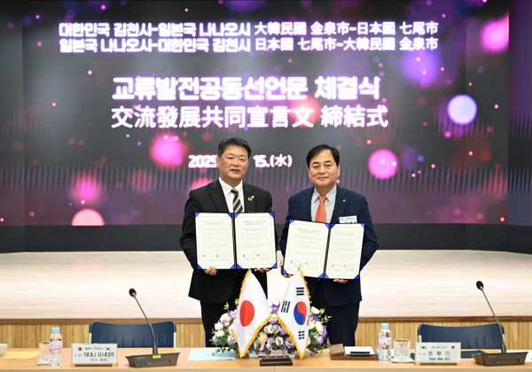 한편 김천시와 나나오시는 1975년 자매결연 체결 이후 행정·문화·청소년 등 다양한 분야에서 지속적인 교류를 이어오고 있다.이번 50주년을 계기로 양 도시는 상호 교류 활성화, 청소년 교류 재개 등 구체적인 협력 사업을 추진할 계획이다.