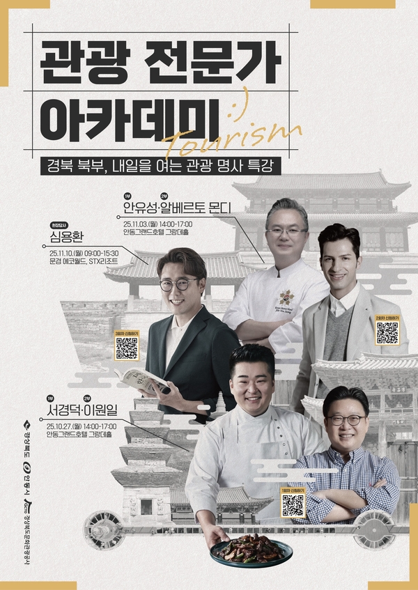 교육은 경북 북부권 11개 시군을 대상으로 총 3회의 대면교육(현장답사 1회 포함)으로 진행된다. 각 회차에는 관광, 문화, 미식 등 다양한 분야의 명사들이 참여해 최신 관광 트렌드와 지역브랜딩 중심의 강연을 펼칠 예정이다.