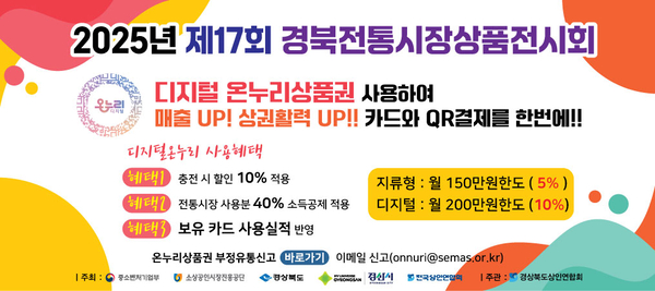 또한, OX 퀴즈쇼, 전통시장 경매 이벤트, 경북 상인 가왕 찾기, 레크리에이션 등 다양한 참여형 프로그램이 3일간 진행되며 시민들과 상인들이 함께 어우러지는 축제의 분위기를 이어갈 예정이다.