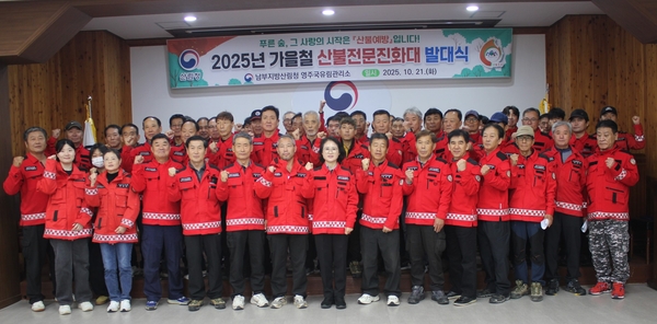 이날 발대식에는 산림재난특수진화대, 산불전문예방진화대 등 61명이 참석해 산불예방 결의문 낭독, 장비 점검, 비상대응 체계 점검 등을 실시하며, 한 건의 산불도 발생하지 않는 안전한 가을산 만들기를 다짐했다.