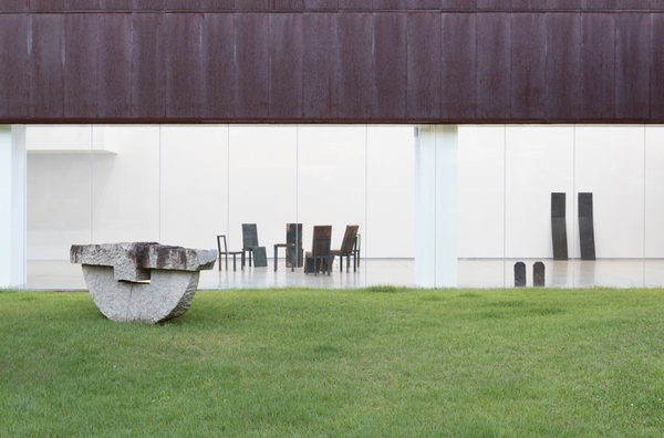 뮤지엄 로비에는 ‘묵시공간-존재’가 전시된다. 녹슨 철, 브론즈, 불에 탄 나무, 투명 아크릴 등 다양한 재료로 구성된 작품은 ‘존재하되 부재하는 공간’을 시각화했다.