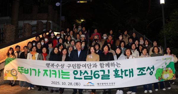 김대권 수성구청장은 “여성, 아동, 장애인 등 사회적 약자가 안심할 수 있는 도시를 만드는 것이 핵심 목표”라며 “주민이 직접 참여하는 생활안전 정책을 지속 확대해 모두가 행복하고 안전한 도시를 만들겠다”고 밝혔다.