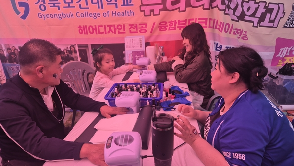 이번 축제 참여는 대학이 지역민과 함께 호흡하고 지역사회에 기여하는 상생 활동의 일환으로 경북보건대학교 뷰티디자인과 교수진과 재학생들이 네일케어와 손마사지 타투스티커 등 시민 누구나 부담 없이 참여할 수 있는 체험 프로그램으로 진행됐다.