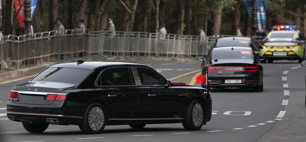 회담을 마친 시 주석은 전용 의전차량인 ‘훙치 N701’을 타고 고속도로를 이용해 경주로 이동했고, 오후 1시 53분 경주IC를 통과해 약 20분 뒤 숙소인 코오롱호텔에 도착했다.