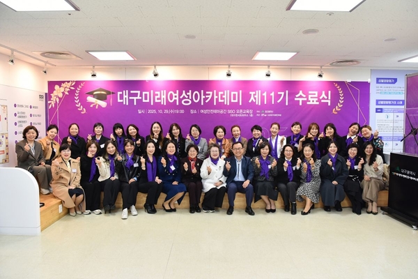 이날 수료식에는 홍성주 대구시 경제부시장, 이재화 대구시의회 부의장, 배기철 대구시행복진흥사회서비스원 이사장, 아카데미 수료생 등 100여 명이 참석했다. 지난 4개월 간 프로그램을 수료한 여성 리더 37명은 이날 수료증을 받았다.