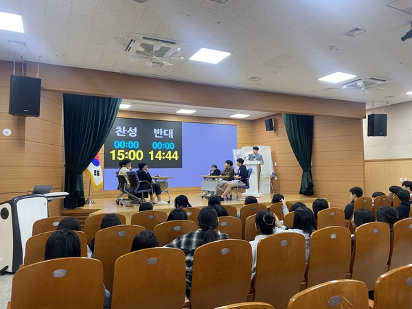 지난 30일 경상북도교육청 해양수련원(영덕군 병곡면 소재)에서 개최된 이번 토론회는 학생들이 토론자로 나서 「수업 중 학생들의 휴대폰 사용을 금지해야 하는가」란 논제에 대해 찬반 의견을 주장하고 다른 의견에 대해 반론하는 등 40여분간 열띤 토론의 시간을 공유했다. 토론 종료 후에는 논제에 대한 찬반투표 및 승리팀 결정을 위한 개표까지 실시하여 학생들의 관심과 흥미를 이끌었다.