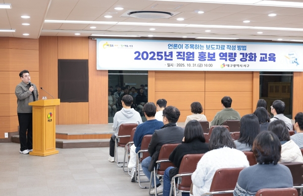 서구청은 지난 10월 31일 오후 4시 구청 대회의실에서 6·7급 직원 100여명을 대상으로 ‘직원 홍보 역량 강화 교육’을 진행했다. 이번 교육은 상반기에 이어 두 번째로, 전 직원이 정책을 직접 홍보할 수 있는 실무 역량을 기르기 위한 프로그램이다.