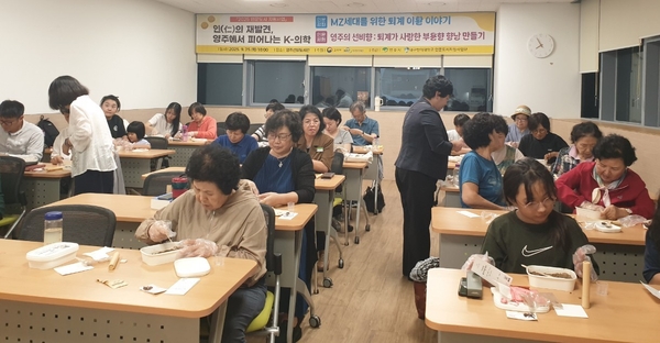 | ▲ 지난 9월25일 ‘K-의학과 향문화’인문강좌 및 체험프로그램을 운영한 모습.영주선비도서관제공 | ||