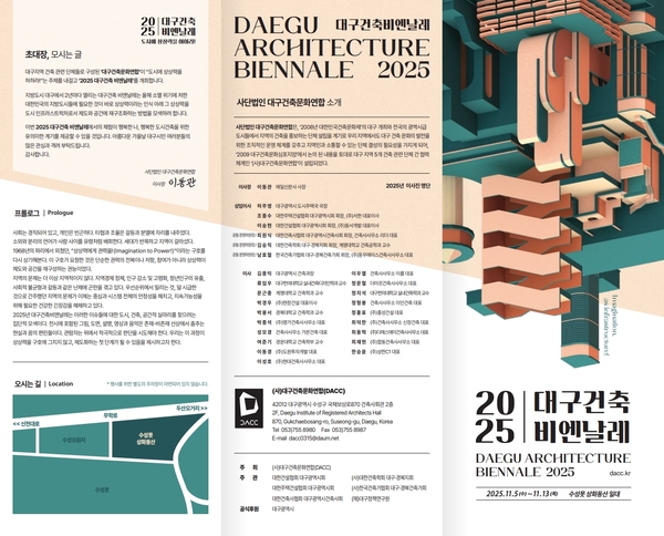 초청전시에서는 ‘2025 대구시 건축상’ 수상작, ‘대구건축 아카데미’ 작품, ‘대구건축사회 우수작품’ 등이 소개된다. 젊은 건축가들의 후적지 개발 아이디어도 전시돼 창의적인 도시공간 활용 방안을 제시한다.