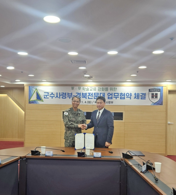 경북전문대학교가 지난 4일 육군 군수사령부와 학·군 교류체제 구축 및 상호 교류에 관한 업무 협약(MOU)을 체결했다고 5일 밝혔다.