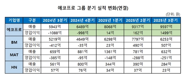 에코프로는 5일 공시를 통해 올해 3분기 연결 기준 매출 9597억 원, 영업이익 1499억 원을 기록했다고 밝혔다.