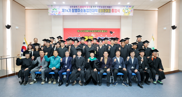 한편 2012년 설립된 참별미소농업인대학은 이번 제14기 33명의 졸업생을 포함해 총 598명의 졸업생을 배출했으며, 참외산업을 선두로 농업조수입 1조원 달성에 기반이 되는 최고의 농업전문가 양성 교육과정을 운영하고 있다.